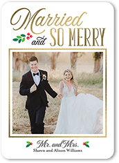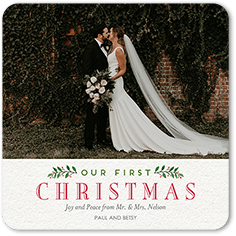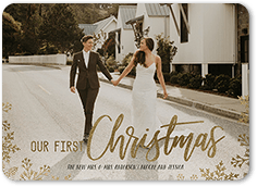 LETITSNOW ends Fri 123. Make your debut as a married couple with a newlywed christmas card. Personalized Cards for Newlyweds Wow your loved ones with a holiday card highlighting your favorite photo from the big day alongside your personal Christmas wishes and a festive design.