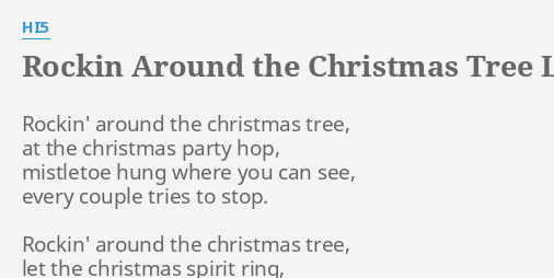 Rockin around the Christmas tree At the Christmas party hop Mistletoe hung where you can see Every couple tries to stop Rockin around the Christmas tree Let the Christmas spirit ring Later well have some pumpkin pie And well do some caroling You will get a sentimental feeling when you hear Voices singing lets be jolly Deck the halls with boughs of holly Rockin. Rockin around the Christmas tree. Later well have some pumpkin pie.